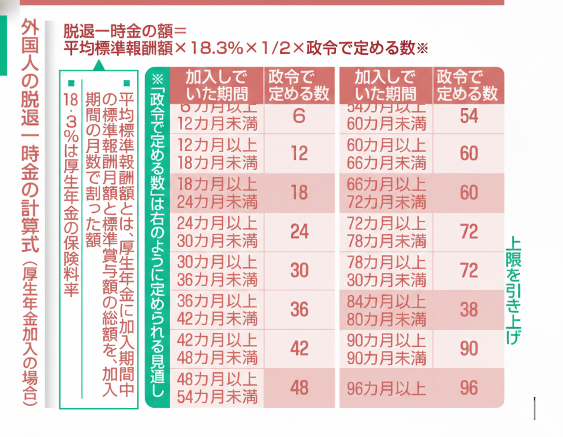 - 必要書類: 脱退一時金請求書、パスポートのコピー(出国印があるもの)、銀行口座証明、年金手帳。